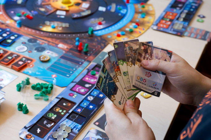 You will also make use of over 200 cards to aid your efforts or focus your research in a particular direction for additional bonuses and rewards. Each card has unique effects and illustrations and depicts real-life technologies, projects, and discoveries (like the ISS, Large Hadron Collider, Perseverance rover, Voyager probe, and many more).