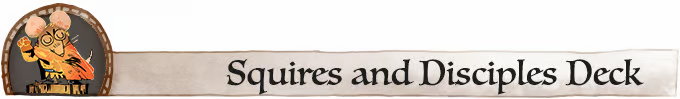 Try out new strategies with the Squires and Disciples deck! Just like the Exiles and Partisans deck, this deck can be swapped in to replace the deck from the base game. This deck includes cards inspired by the Marauder and Homeland factions and abilities that depend on hand composition, with a dash of goofs and shenanigans. Want to change when the game ends or how dominance cards work? You can!