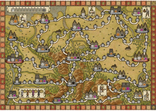 The players act as traders trying to get victory points for building a network of offices, controlling cities, collecting bonus markers, or when other traders use the cities they control. After controlling a line between two cities with your pawns, you can decide to build an office (and maybe also establish control and/or get a bonus marker) or to get a skill improvement from some of the cities.