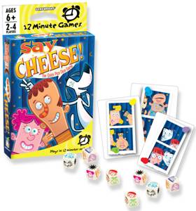 Race to the photo finish in this dice game that plays out in a flash! Quickly roll your dice to match the characters on the photo booth cards. When you match a pair, shout "Cheese!" and collect the card. Win all the cards and you're picture perfect!