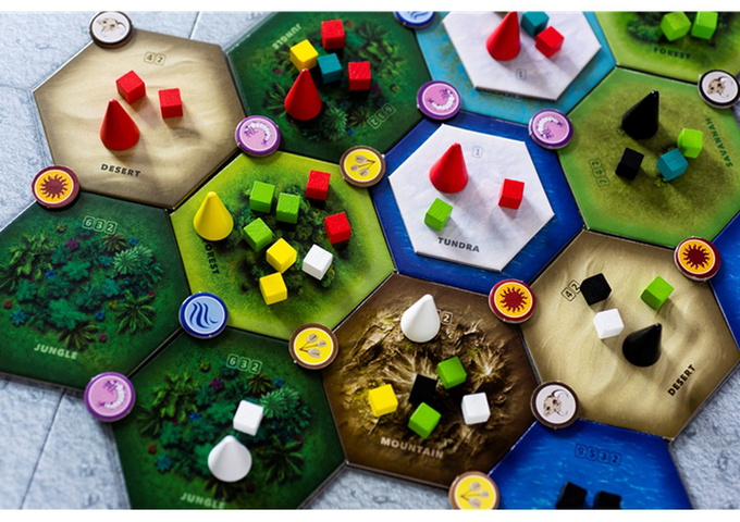 We have reworked all the internal component art for the 3rd to 5th printings of this game. The board, cards, and tiles all have a new look from the 1st and 2nd printings. Here are some samples: