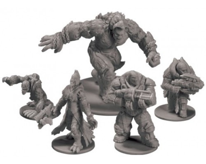 Gears of War: The Board Game, designed by Corey Konieczka, is based on the wildly popular third-person shooter by Epic Games. One to four players take on the roles of COG soldiers cooperating to destroy the Locust horde, and must work together to complete missions against an ingeniously challenging and varied game system. In Gears of War: The Board Game, you’ll relive classic moments from Gears of War and Gears of War 2 – Roadie Run into cover, spray your enemy with blind fire, or rip him in half with your Lancer's chainsaw!