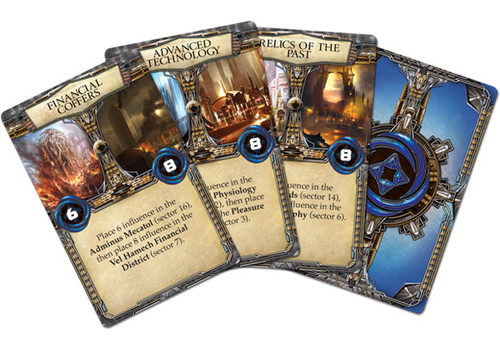 Unfortunately, mustering troops in the face of an ongoing Sol blockade is difficult at best (unless, of course, you are the Federation of Sol or its faithless ally, the Hacan, who supply the blockading fleet). Savvy leaders must gather support from the local populace, uncover hidden weapon caches, and acquire control over key institutions. Mechanically, this means players must lay claim to areas that provide influence, which is then "spent" to (among other things) smuggle military forces through the orbiting Sol blockade. Those forces will be needed to seize the key areas of the city required to win the game. From the moment the first shot is fired, players must aggressively seek the means by which to turn the conflict to their own advantage.