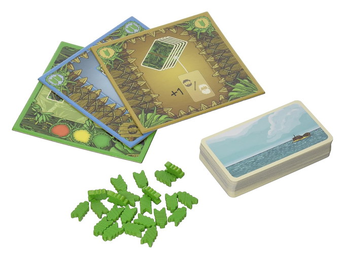 In this game, Robinson is represented as a card stack of different behaviors. You are forced to improve this card stack, so you can collect the cards at the end of the game to give Robinson the best chance to win against the tough pirates!